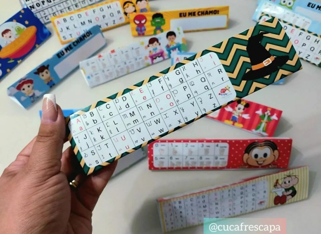 Todos os temas acompanham 2 crachás, sendo um com letra bastão e outro com os 4 tipos de letras.