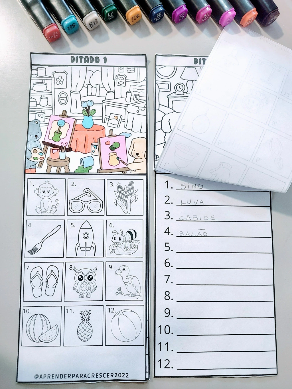 ✨Cada ditado tem 12 figuras com espaço para escrever o nome ou letra inicial.