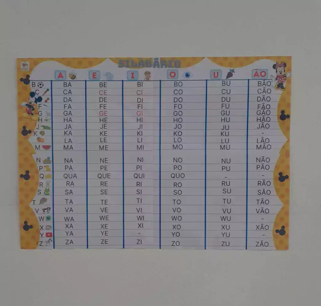 Todos os cartazes podem ser impresso em impressora A4, os tamanhos são de cartazes A4, 2 A4, 4 A4 ou 8 A4 (Silabários).