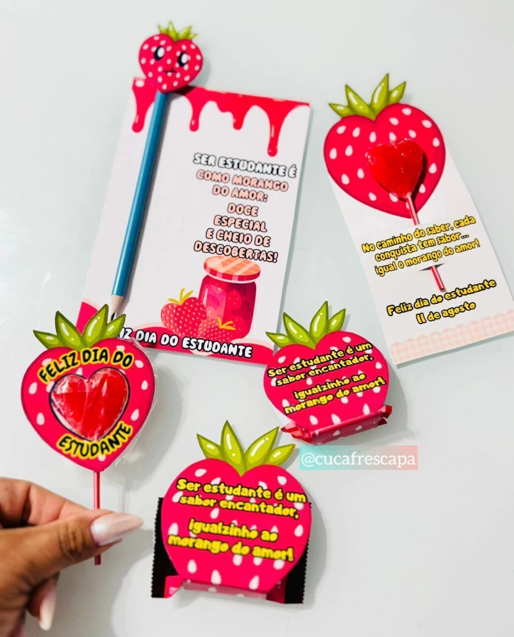 Dia 11 de agosto comemoramos o dia dos estudantes e para celebrar de maneira que eles gostam, preparamos esses mimos com o tema do momento “morango do amor”