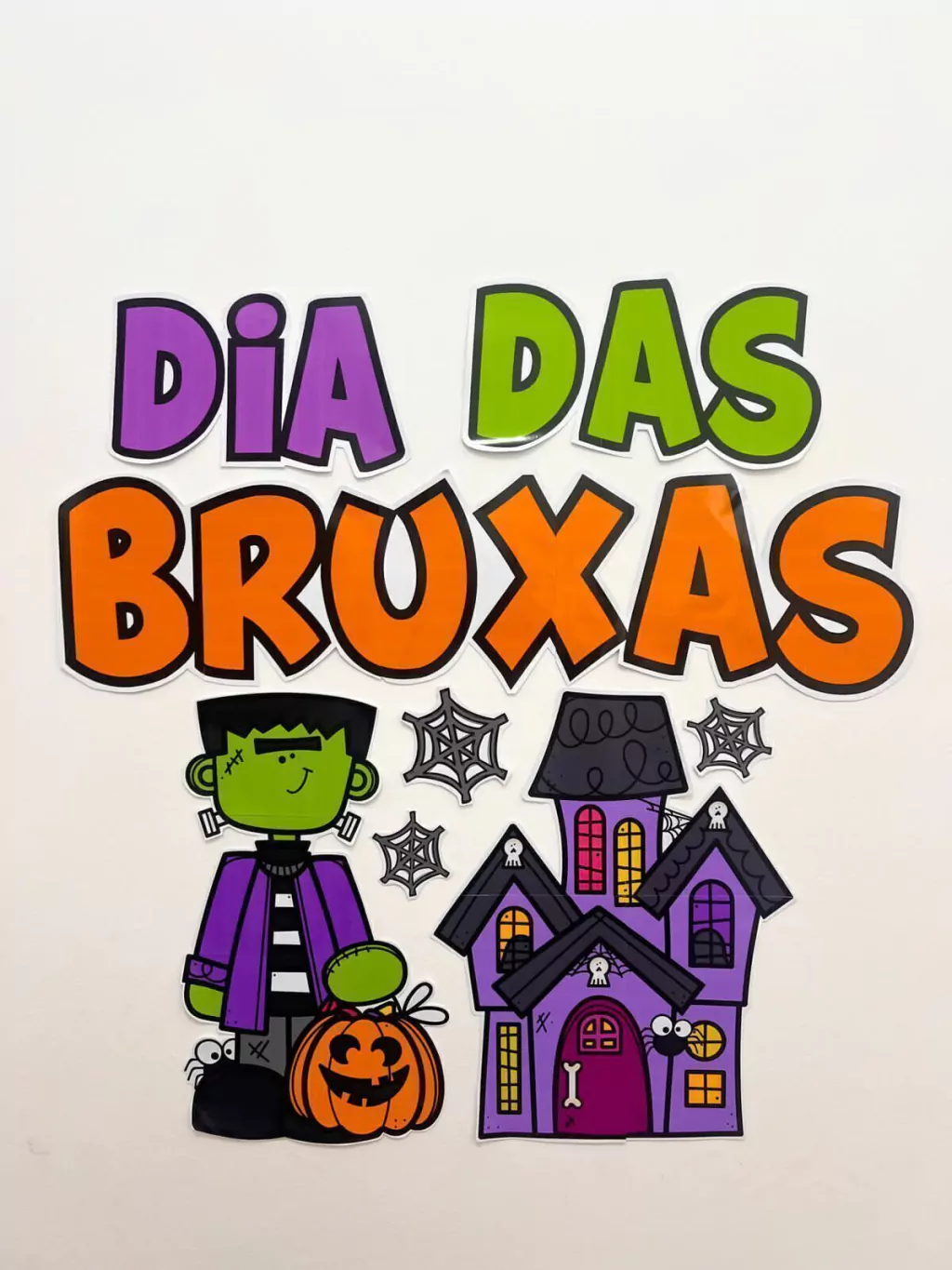 Este material consiste em um painel de 15 folhas para enfeitar sua sala ou escola no Halloween.