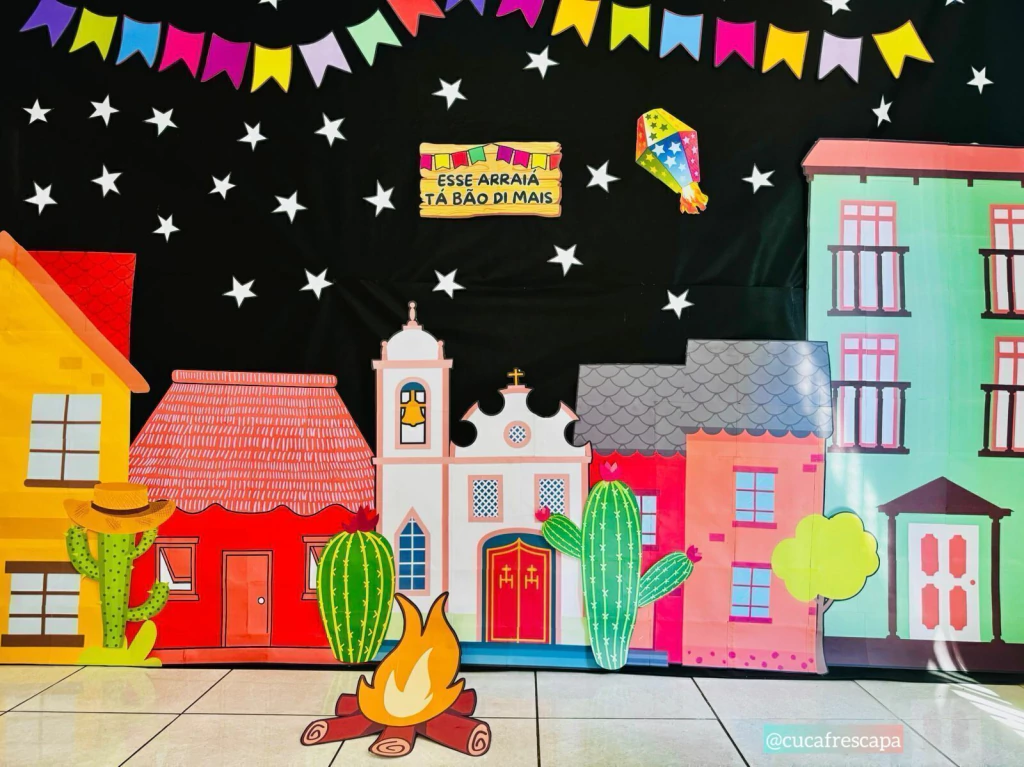 E para comemorar esse evento fizemos uma mega painel em formato de vila para que sua festa seja mais especial e animada.
