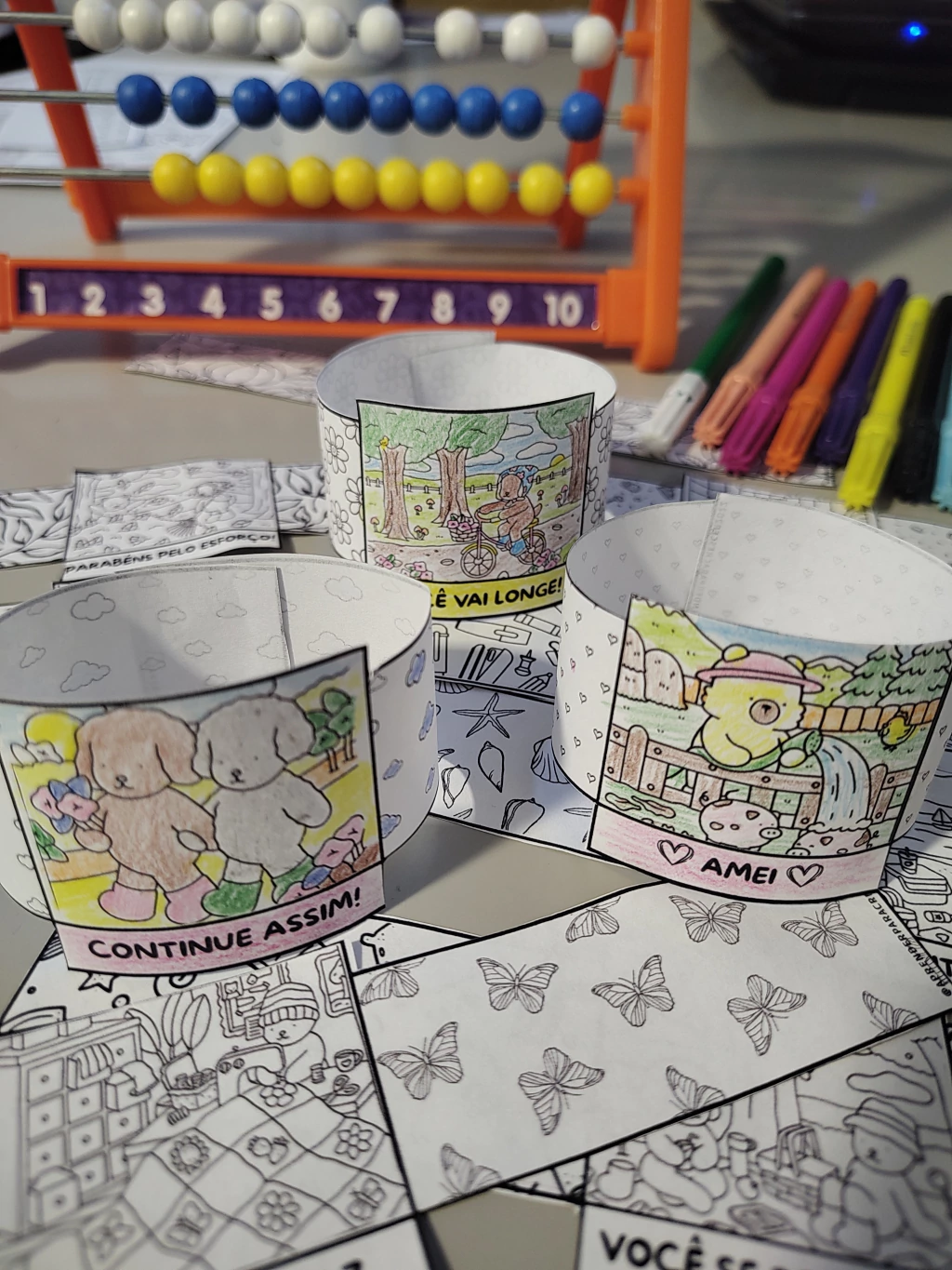 Incentive seus pequenos com o tema do momento, pulseirinhas para colorir com frases inspiradoras.