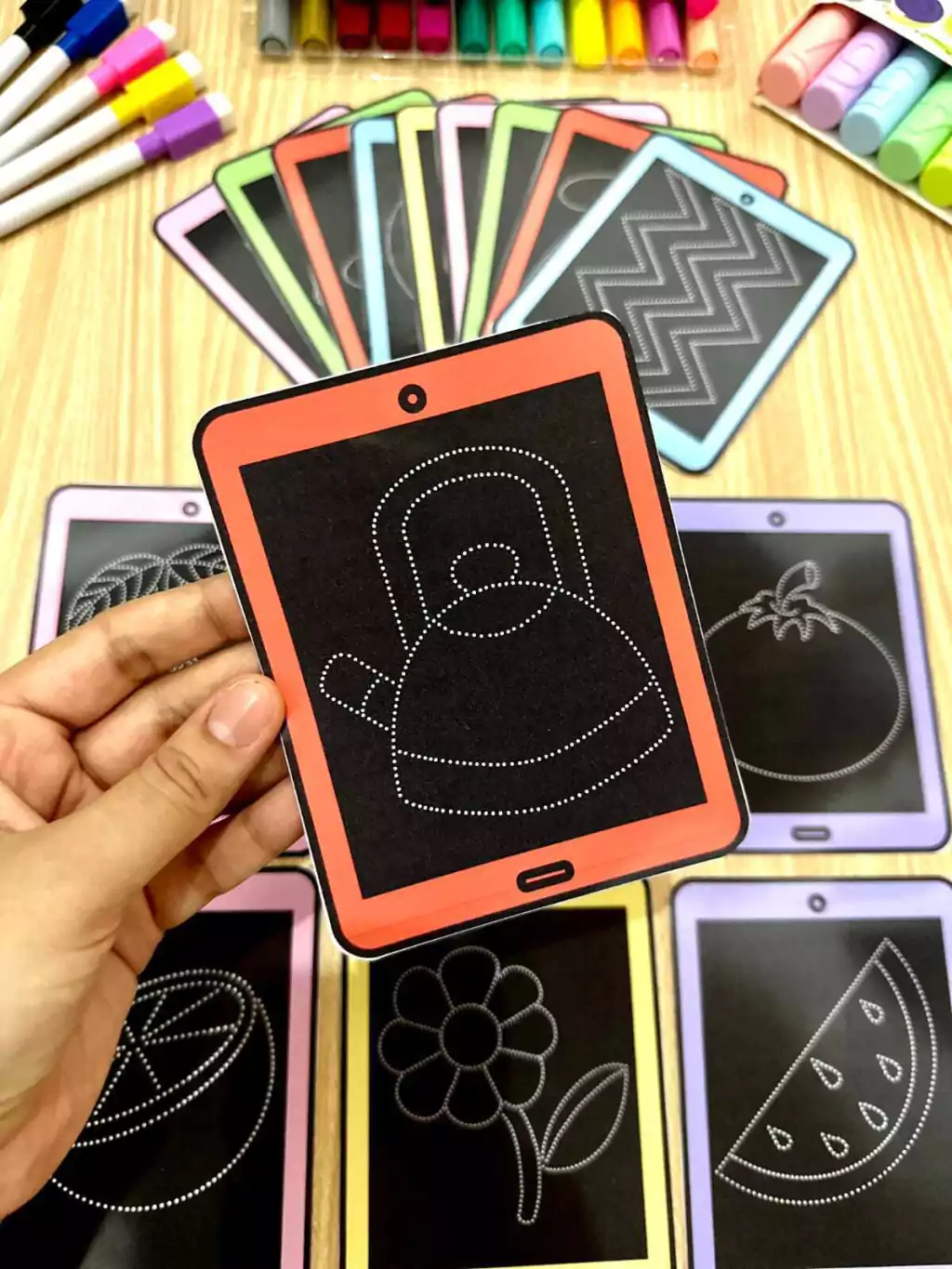 🤩Para utilizar as fichas é necessário passar o papel contact e utilizar com canetas para quadro branco.